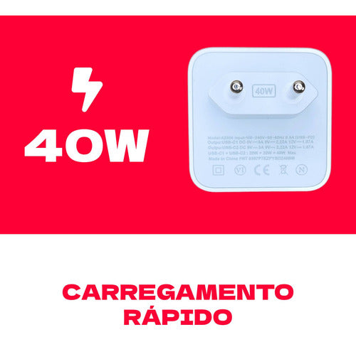 Fonte para Carregador Usb-c Rápido De 40w Com 2 Entradas Usb